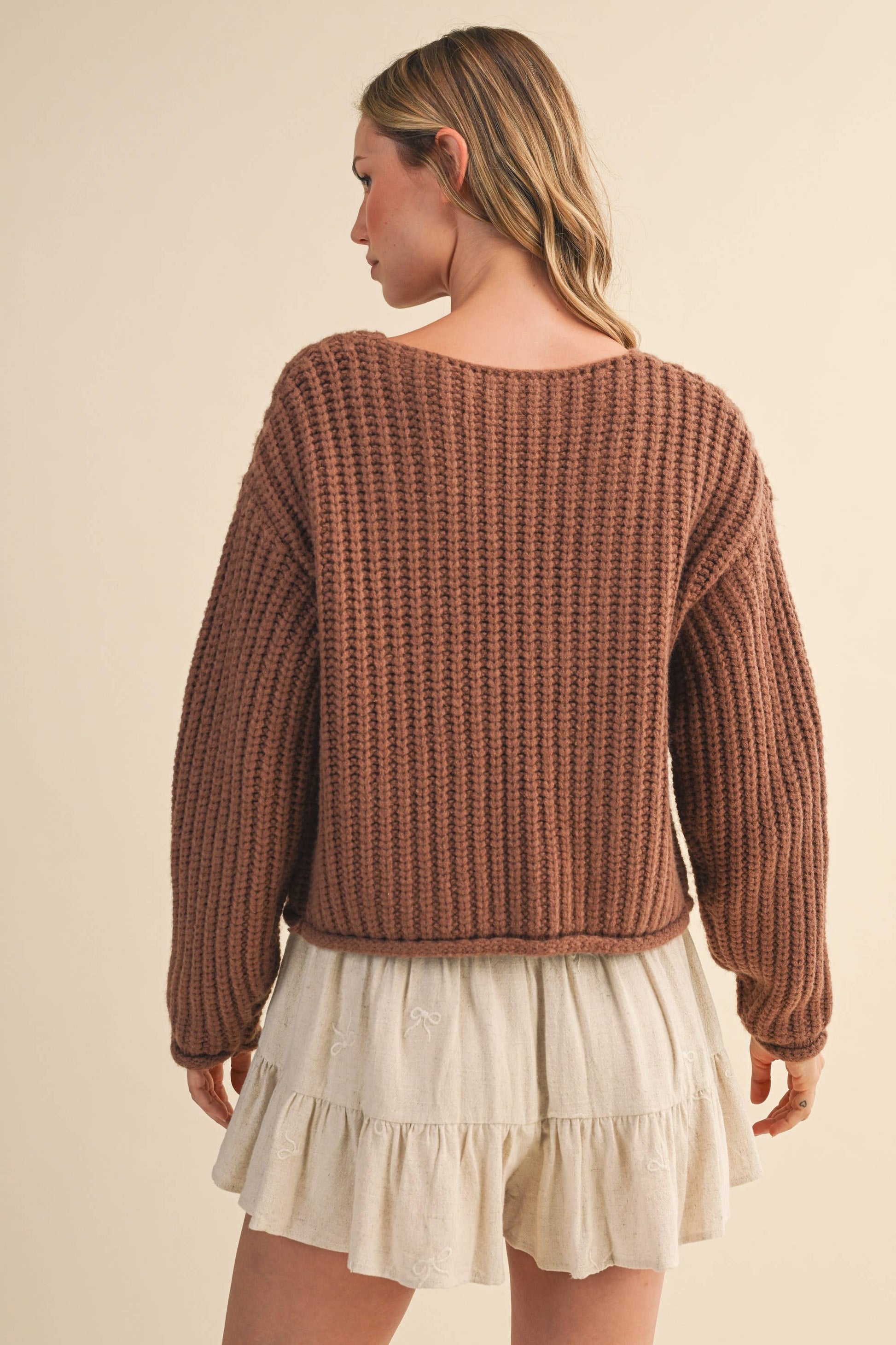 RIBBED FRONT POCKETED SWEATER CARDIGAN WITH FRONT TIE DETAILS